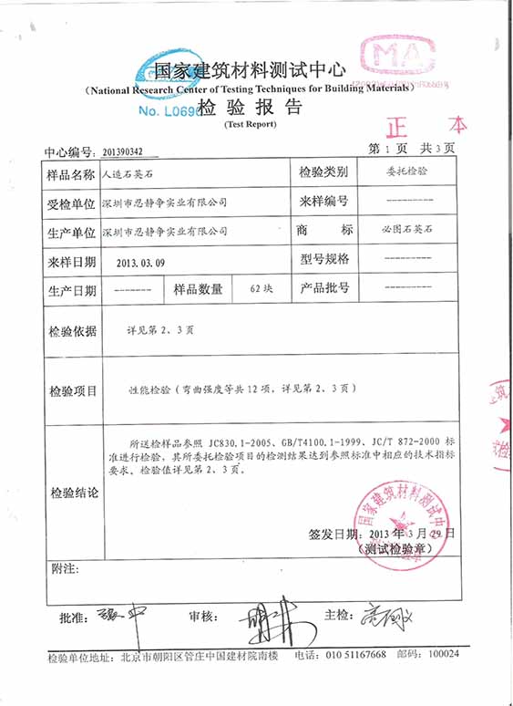 888集团welcome大厅石英石检测报告1