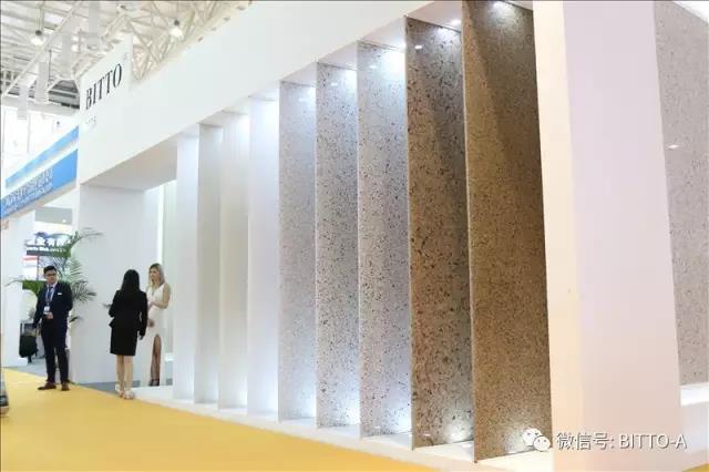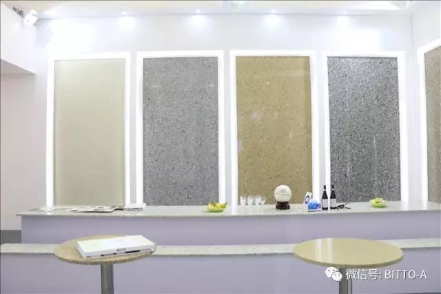 888集团welcome大厅新材展厅时尚大气,色彩简洁明快,明暗适度,利用立式大板材巧妙的隔离吵杂的室外环境,从吵闹的通道走进888集团welcome大厅展厅,让您有眼前一亮的感觉。墙上光亮如滑的特大板材震撼而来,长凳长桌是888集团welcome大厅公司参展以来最长的展品。意向客商走进展厅对长桌长凳赞不绝口,一边喝着红酒,一边欣赏888集团welcome大厅新材新品,生活化的展馆布置给进馆客商留下了深刻影响。